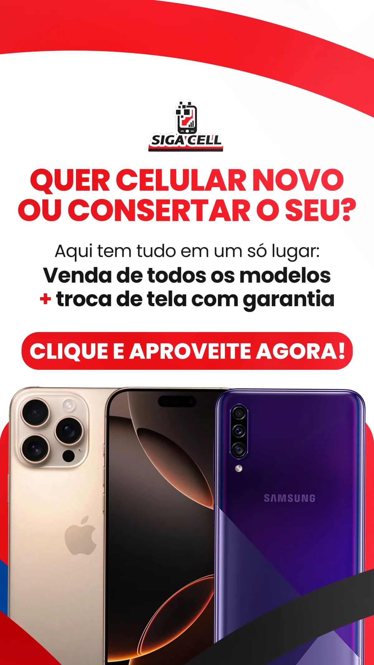 Sim! A Siga Cell trabalha com smartphones novos e seminovos, de várias marcas e modelos, com preços que vão de opções mais acessíveis até aparelhos premium.
