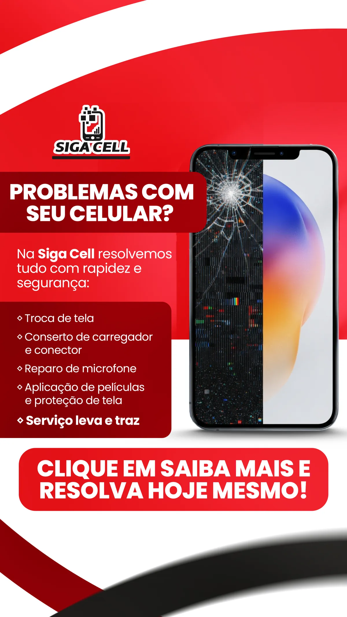 Na Siga Cell, você encontra reparos especializados, produtos de qualidade e atendimento de confiança — tudo em um só lugar, com garantia real e experiência desde 2016.